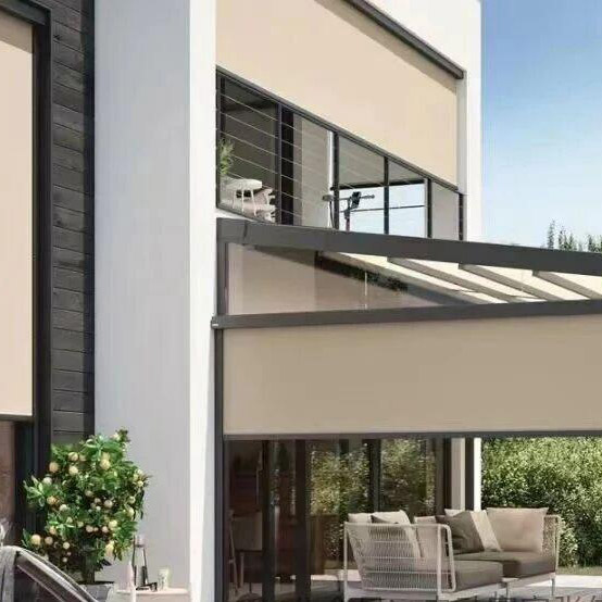 Tirai roller bilik matahari luaran harus mempunyai rintangan angin yang baik dan menyokong kedua-dua kawalan manual dan elektrik. Apabila menggunakan kawalan elektrik, peruntukan untuk pendawaian elektrik dan rel panduan struktur hendaklah dipertimbangkan terlebih dahulu. Sebagai alternatif, panel solar dan sistem bateri boleh digunakan untuk menggerakkan motor buta roller. Ia digunakan secara meluas di studio, restoran taman, ruang istirahat luar dan lokasi lain yang serupa.